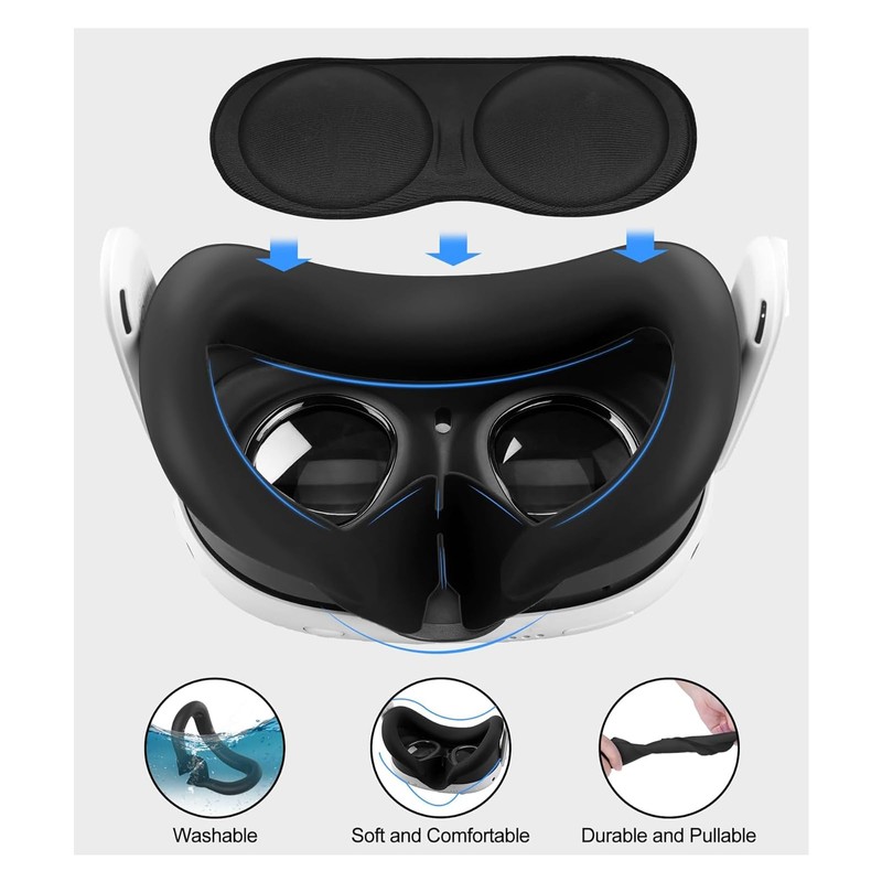 - Enhanced mask comfort: The mask is made of soft, breathable rubber and helps keep the VR gaming environment clean by preventing the Oculus Quest 3 from sweating. Ensure a comfortable and non-exciting gaming experience in VR games for a long time.
