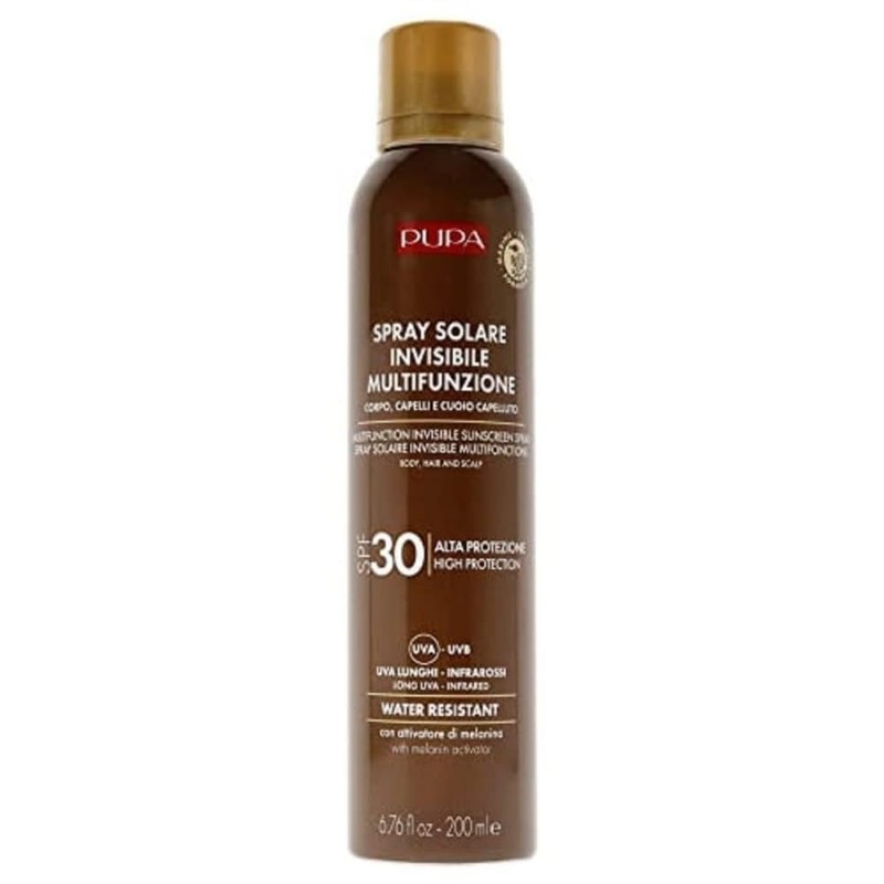 PUPA Milano Multifunction Invisible Water Resistant Sunscreen Spray SPF 30 - Fresh And Pleasant Scent - Stimulate The Production Of Melanin - Super Fast Drying - Prevents Skin Dehydration - 6.7 Oz