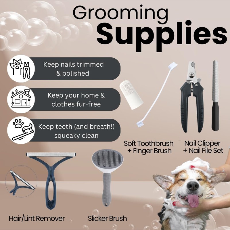 - 🦴 Kit Breakdown: Pet Treat Training Pouch, Quick Release Dog Collar, Reflective Nylon Dog Leash, Soft Flannel Pet Blanket, 2x Non Slip Stainless Steel Bowl, Double Sided Toothbrush, Pet Finger Toothbrush, Stainless Steel Nail Clipper, Stainless Steel Nail File, 4x Biodegradable Dog Poop Bag, Dog Poop Bag Dispenser, Collapsible Travel Bowl, Puppy Training Clicker, 2x Natural Cotton Rope Dog Toy, Treat Dispensing Dog Chew Ball, Double Sided Pet Hair Remover, Self Cleaning Pet Slicker Brush.