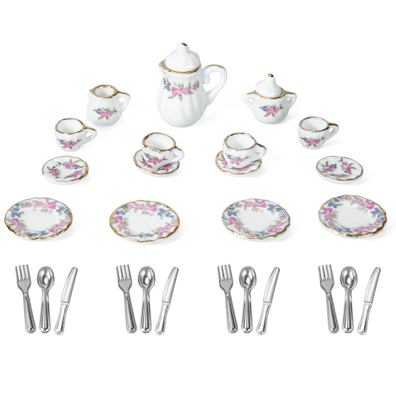 Puppenhaus Zubehör,Miniatur Puppengeschirr Porzellan Wichtel Geschirr Wichtel Besteck Wichtel Zubehör Puppenhaus Küche Zubehör