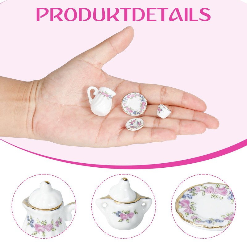 - 【Miniatur Teeservice】Die aus feiner Keramik gefertigte Teekanne und die Teetasse sind exquisit geformt und können als Miniaturkunstwerke bezeichnet werden. Ob Puppenhaus-Teestube oder märchenhaftes Elfenhäuschen, es kann der Szene einen Hauch Leben einhauchen und die Miniaturwelt sofort mit einer warmen Textur erstrahlen lassen.