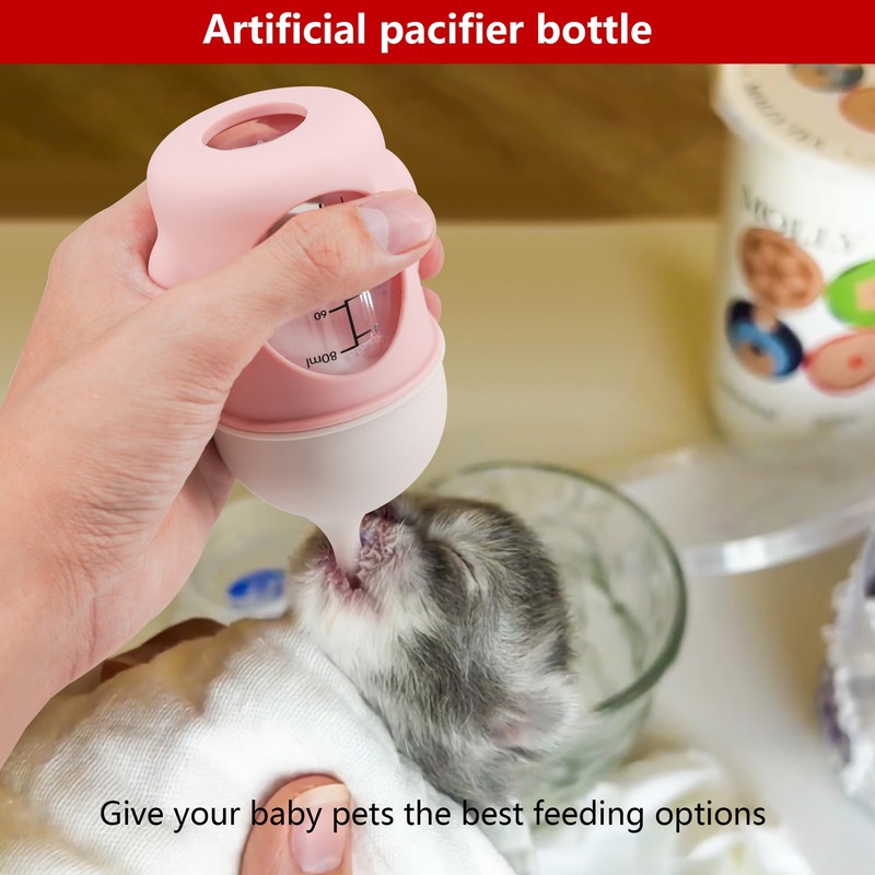 - Instruction: When we use this pet bottle, if the newborn kittens and dogs can suck and drink milk on their own, we only need to hold the bottle; If the newborn kitten and dog can not drink milk on their own, we need to press the silicone pacifier with our fingers, so that the milk will spray out and achieve the purpose of feeding