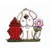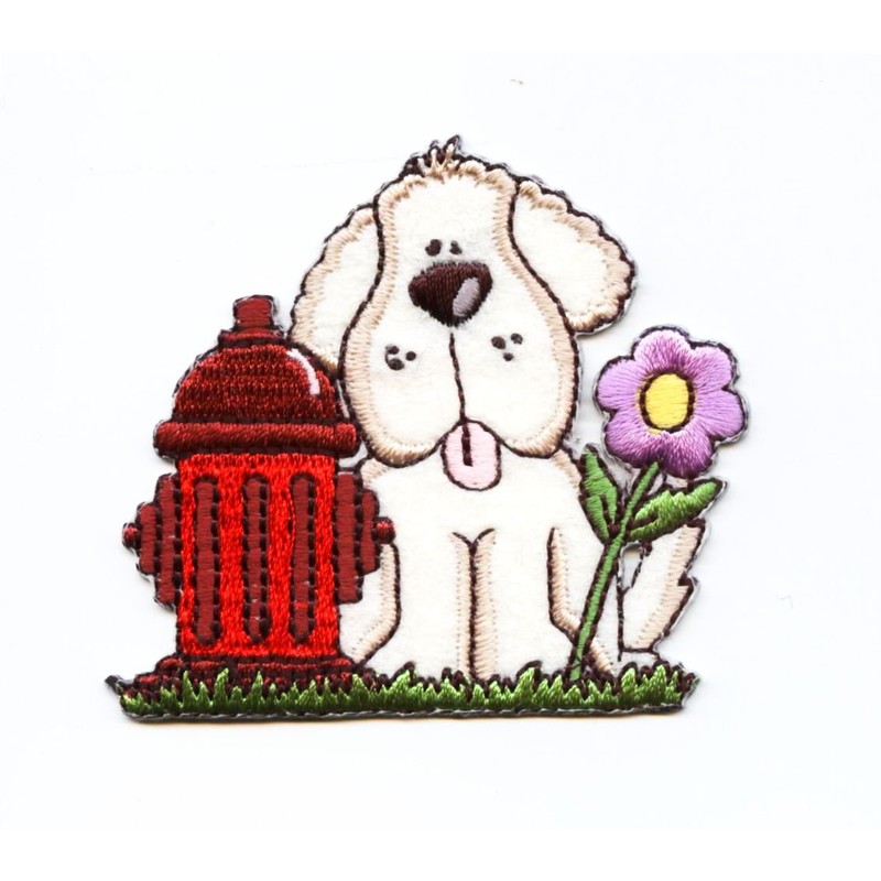 Puppy Dog with Fire Hydrant Embroidered Iron on Patch