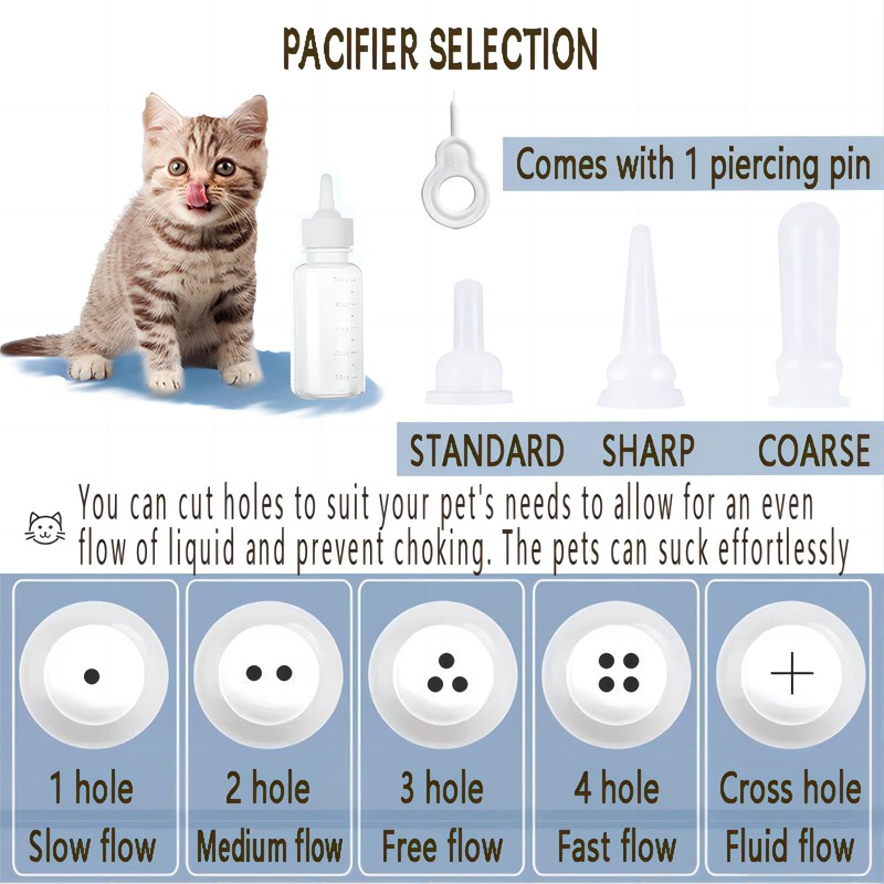 - Nursing Feeding Bottle Kit: Easy to Feed Newborn Pet,including kitten baby bottle and puppy feeding tube,this kit makes it easy to feed your newborn pets; setting your puppies up for growth.These pacifier equipped puppy feeding tube syringes come in a range of capacities,it ideal for meeting the diverse feeding requirements of young pets at different stages.