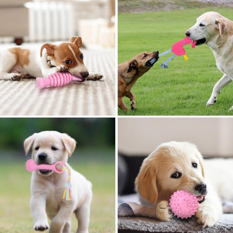 Puppy Teething Toys, Soft and Durable 6 Pack Chew Toys for Small and Medium Dogs, Suitable for 2-8 Months Puppy, Teeth Cleaning and Oral Health Protection (Pink, 6 Pack)