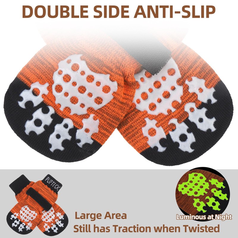 PUPTECK 2 Pairs Double-Sided Non-Slip Dog Socks with Adjustable Straps for Indoor Use, Dog Shoes, Paw Protection, Summer Pet Paws Protection, Traction Control Socks on Hardwood Floor