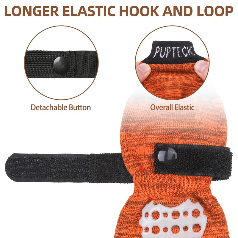 - Anti-fall: Dogs like to run around the house, if the socks do not have firm measures, the socks will fall off again and again. To remedy this defect, our socks are equipped with adjustable and removable adhesive tapes. You can adjust them to your dog's feet and take them off when you need to wash the socks. They are very convenient to use. Socks no longer fall off.