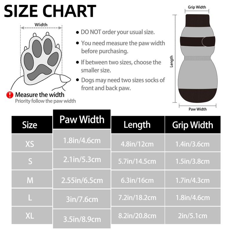 - Size Matters: Multiple colors and sizes to choose from, please measure your dog before purchasing. The 2 pairs of dog socks are suitable for dogs of all ages and make their daily life more cozy in winter and keep your dog's paws safe from hot pavement in summer. Please note that dog socks are made of durable material but are not bite-resistant. Please trim your pet's nails before use.