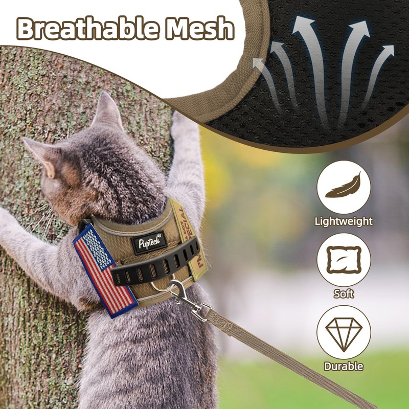 PUPTECK Tactical Cat Harness and Leash Set Escape Proof, Adjustable Reflective Kitten Jacket Easy Control, Pet Vest Harness for Cats Small Dogs Puppies Walking and Travel
