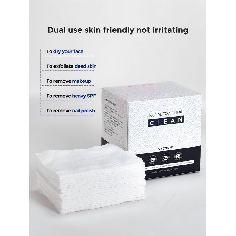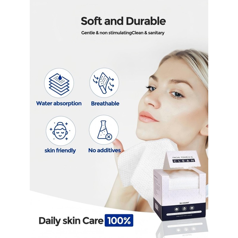 PUPUPE Disposable Face Towels, Viscose Biodegradable Large Dry Wipes, Super Soft & Thick Face Cleansing Towels, Daily Facial Tissues for Sensitive Skin, Makeup Removing,Facial Clean,Nursing,Travel (50 Count)