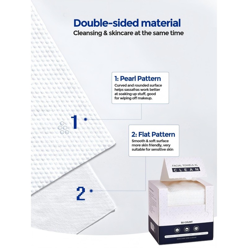 - Features -- This Viscose Biodegradable Large Dry Wipes is designed with a two-sided texture that is smooth on one side for gentle scrubbing of the skin, and with an Pearl Pattern on the other side that provides a greater grip for deeper cleansing of your skin. It does not produce cotton flakes and is suitable for all skin types (special note: for special skin types, please try a small area in an inconspicuous place first and stop using it immediately if discomfort occurs).