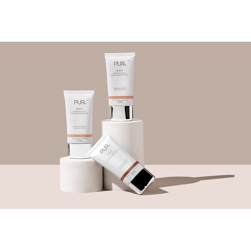 PÜR 4-in-1 Mineral Tinted Moisturiser, Broad Spectrum SPF 20, Moisturiser, Primer, Foundation & Sun Protection All In One, Infused with Powerful Hydrators, Gluten-Free, Vegan Friendly - Medium 50g