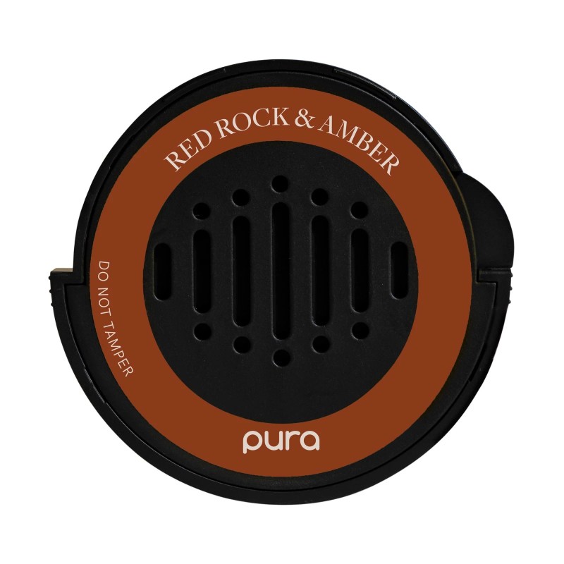 Pura Car Diffuser Aroma: This car scent diffuser refill features grounding and woody aroma notes of geranium, red rock minerals, amber resin, and desert woods