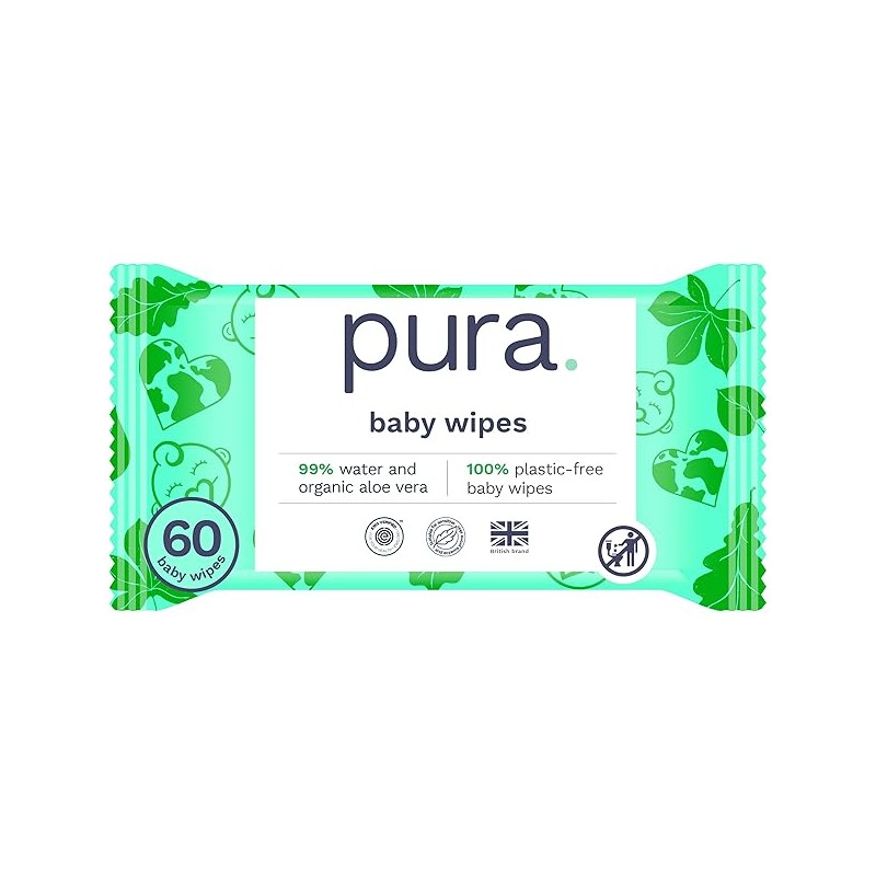 Pura Natural Sensitive Baby Wipes, 99% Water, Unscented & Hypoallergenic, Suitable for Sensitive & Eczema-prone Skin, Fragrance Free & Hypoallergenic, EWG Verified, 1 Pack of 60 Wet Wipes
