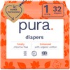 Pura Pura Hypoallergenic Diapers, Size 1 (4-11 lbs), Newborn, Totally Chlorine Free, Wetness Indicator, Suitable for Sensitive Skin, Soft Organic Cotton Comfort, Overnight, 1 Pack of 32 Baby Diapers