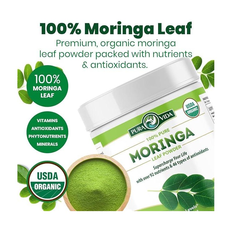 Pura Vida Moringa Powder - 100% Leaf Powder USDA Organic