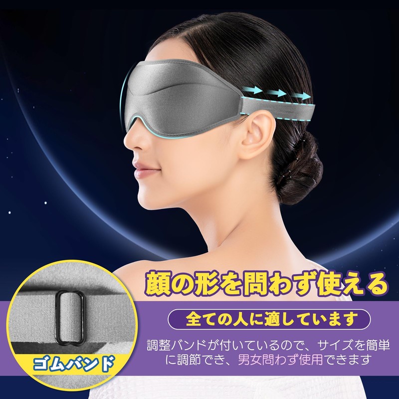 - (Adjustable Elastic Band) Unlike the ear hanger type, the eye mask does not put strain on your ears. Adjustable buckle allows you to adjust the size of your eye. In addition, the adjustable band has good elasticity and can be used by adults and children