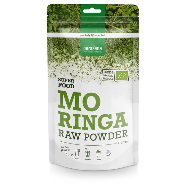 - Moringa powder is characterised by the best raw material quality: pure organic, vegan, raw food, no pesticides, no added food