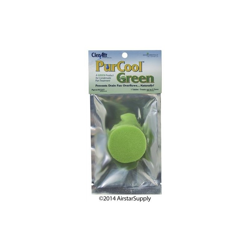 Used in air handler condensate pans. Time release formula adheres to pan and fully dissolves over time No housing or sock to remove. Unique green formula utilizes plant based suspending and dispersing action to keep pans clean and free flowing.