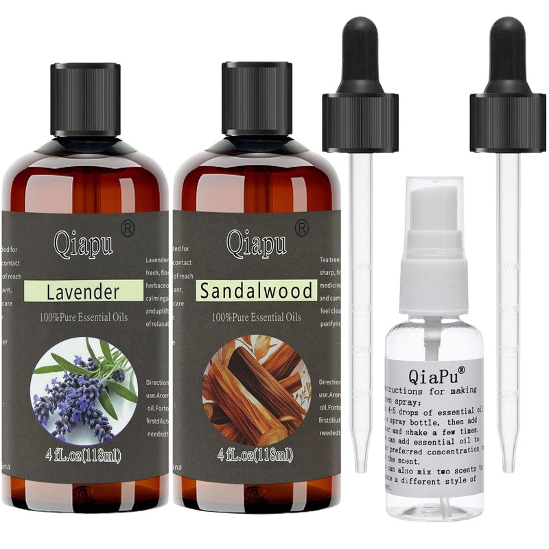 Pure and Natural Scented Oil Essential Oil for Diffuser Premium Aromatherapy Oils for Laundry Scented Oils with Dropper (4 fl.oz-2PCS, Lavender+Sandalwood)