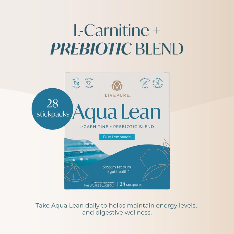 PURE Aqua Lean | L-Carnitine & Prebiotics for Energy Support | Vegan, Sugar-Free, Gluten-Free, Caffeine-Free | Helps Support Metabolism & Digestive Health | 28 Convenient Stick Packs