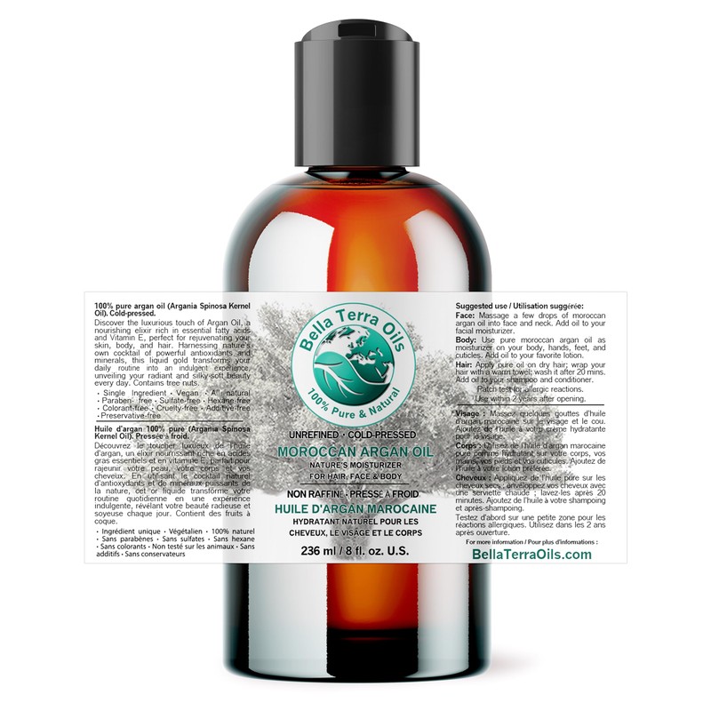 Pure Argan Oil for Hair, Skin, and Nails – 236 ml, Non-Greasy, Fast Absorbing, Perfect for Hair & Skin – Bella Terra Oils…