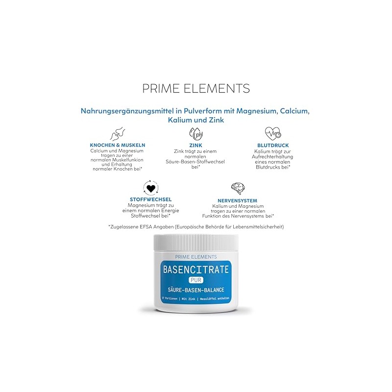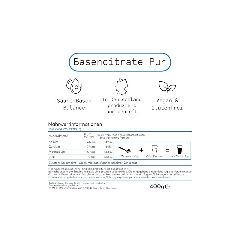 Pure base citrate without sugar and sweeteners, for a normal acid-base balance, lots of magnesium citrate, suitable for diet and alkaline fasting, vegan, basic salty flavour