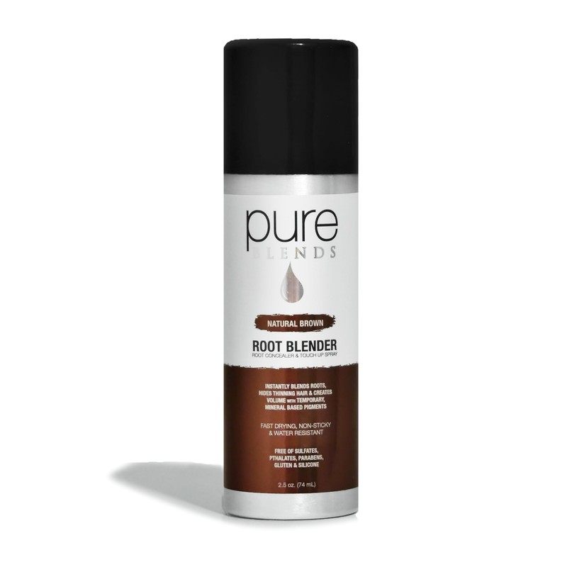 Pure Blends Root Blender - The Ultimate Instant Root Concealer & Volumizer! Need a quick and easy way to blend out gray roots or cover thinning hair? Need a quick and easy way to blend out gray roots or cover thinning hair? Pure Blends Root Blender is a temporary, mineral-based root concealer that provides instant, natural-looking coverage with zero mess. Whether touching up new growth, concealing sparse areas, or adding volume, this fast-drying spray delivers seamless results in seconds. Covers Gray Roots & Thinning Hair - Say goodbye to visible grays and thinning spots. Root Blender hides roots and scalp visibility, giving the appearance of thicker, fuller hair. Fast-Drying, Lightweight, & Non-Sticky - Unlike other root sprays, our formula dries instantly, leaving no sticky residue, flakes, or stiffness. Water-Resistant & Long-Lasting - This humidity-proof, sweat-resistant formula stays put until your next shampoo. Mineral-Based, Hair-Safe Formula - Free of sulfates, parabens, phthalates, gluten, and silicone, making it safe for all hair types. Precision Nozzle for Easy Application - Simply shake, spray, and go! No mess, no hassle - just flawless roots in seconds. Perfect for All Hair Types & Shades! Available in multiple colors to match your natural hair shade seamlessly. Portable & Travel-Friendly - Compact size for on-the-go touch-ups anytime, anywhere. Washes Out Easily with Shampoo - No commitment, no buildup - just effortless coverage when you need it. Get salon-quality results in the comfort of your home with Pure Blends Root Blender!