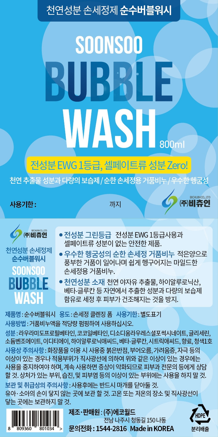 Pure Bubble Wash 800ml / 순수 버블 워시 800ml