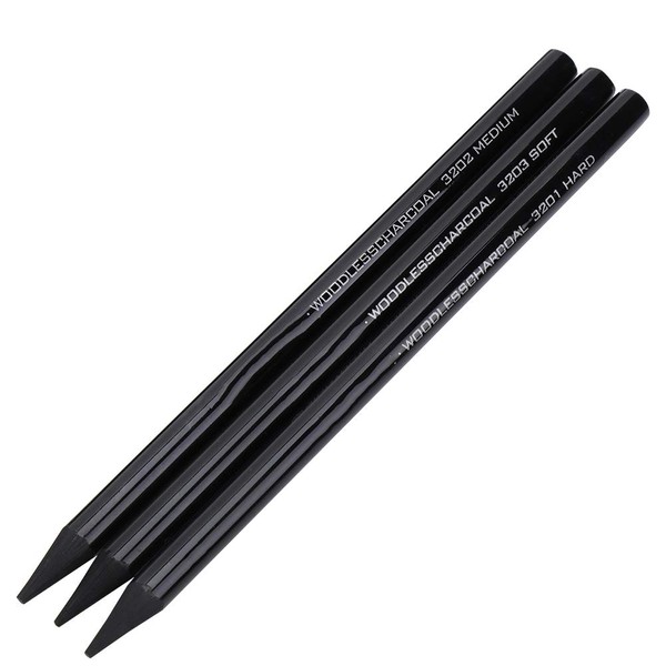 Pure Carbon Sketch Pencil, Professional Hard/Medium/Soft Woodless Charcoal Drawing Tool Set, Pack of 3