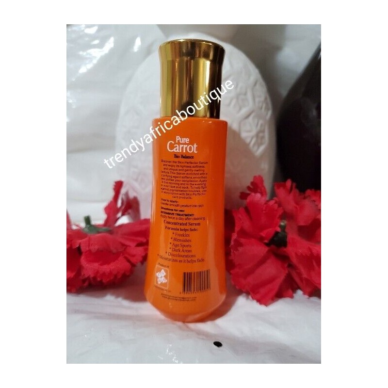 Pure carrot bio balance serum is a concentrated serum. It helps clear freckles, blemishes, age spots, discolorations from the skin.