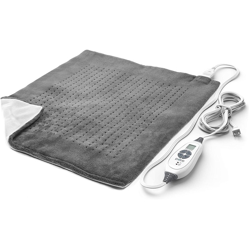 Pure Enrichment® PureRelief™ XXL (20" x 24") Electric Heating Pad for Back Pain and Cramps - 6 InstaHeat™ Settings, Machine Washable, Soft Microplush, 2-Hour Auto Shut-Off, & Storage Bag (Gray)