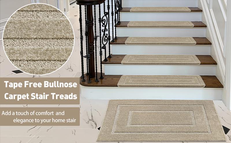 The Carpet Stair Treads provide both elegance and comfort while also protecting your stairs from daily scratches wear and tear, and reduce noise. With a geometry lozenge design, the nonslip texture does not only make our staircase mats safe, It also complements the natural beauty of your steps.