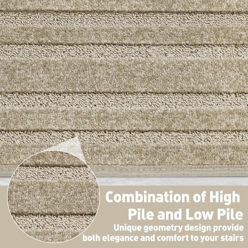 The Carpet Stair Treads provide both elegance and comfort while also protecting your stairs from daily scratches wear and tear, and reduce noise. With a geometry lozenge design, the nonslip texture does not only make our staircase mats safe, It also complements the natural beauty of your steps.