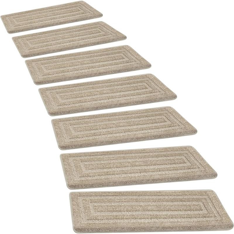 PURE ERA Bullnose Carpet Stair Treads Set Tape Free Non-Slip Indoor Stair Protectors Pet Friendly Rugs 9.5" x 30"x1.2" (14 Pieces,Cream Gray Rectangular) - size: 7pcs