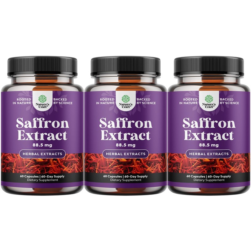 Pure Extract of Saffron Supplements - Crocus Sativus Flower of Saffron Extract Capsules for Good Mood, Metabolism Support & Eye Health - Vitality & Mood Enhancer for Women & Men - 3 Pack