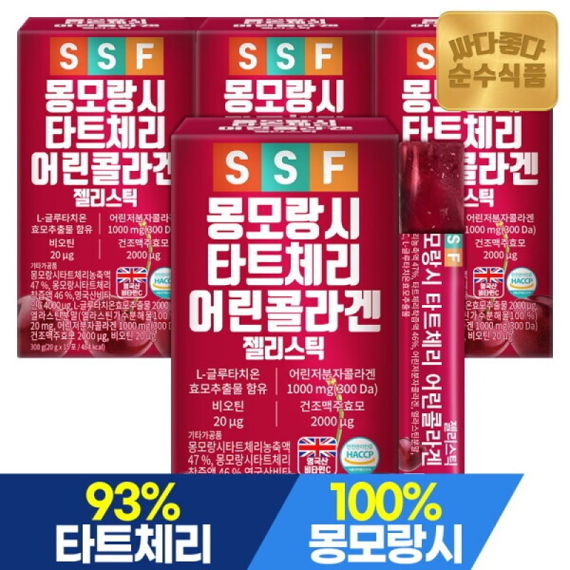 Pure Food Montmorency Tart Cherry Low Molecular Fish Collagen Jelly Sticks 300 Daltons, 4 Boxes (60 Packets) / 순수식품 몽모랑시 타트체리 저분자 피쉬 콜라겐 젤리 스틱 300달톤 4박스(60포)