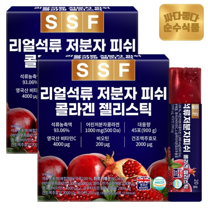 순수식품 리얼 석류 저분자 피쉬 콜라겐 젤리 스틱 2박스(90포) 실속형