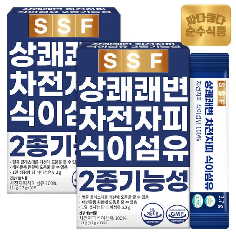 순수식품 상쾌한 쾌변 차전자피 2박스(60포) 식이섬유 분말 가루 장운동