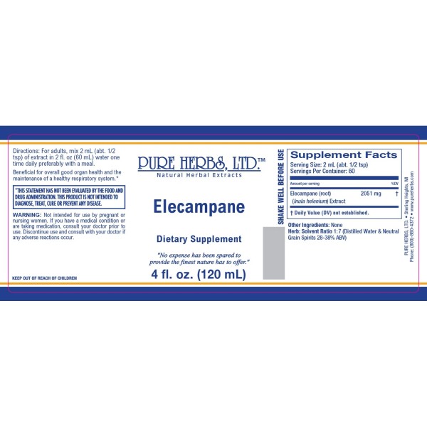 Pure Herbs: Elecampane (Inula helenium) - Beneficial for overall good organ health. Beneficial for the maintenance of a healthy respiratory system.*