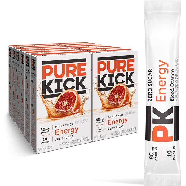 Pure Kick Energy Singles To Go Drink Mix, Blood Orange, Includes 12 Boxes with 6 Packets in each Box, 72 Total Packets