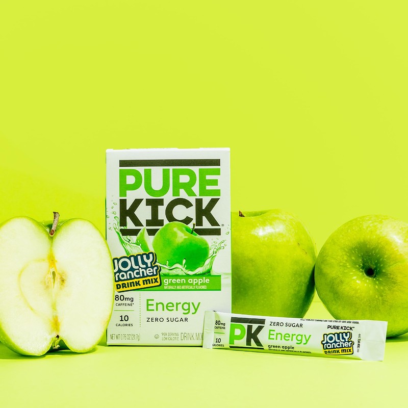 PURE KICK PURE KICK Energy Singles To Go Drink Mix, Jolly Rancher Green Apple, Includes 12 Boxes with 6 Packets in each Box, 72 Total Packets