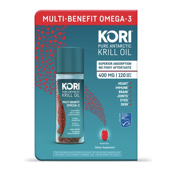 Kori Pure Antarctic Krill Oil Multi Benefit Omega-3 Mini Softgels, (400 mg,120ct.)