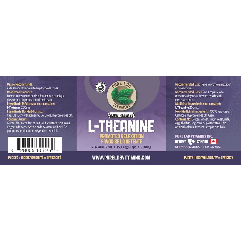 Introducing Pure Lab Vitamins L-Theanine Natural Pressure Relief Supplement, a natural and safe way to reduce nervousness and promote relaxation without causing drowsiness. L-theanine is a unique amino acid found in Green Tea, and it can help increase focus during times of pressure by reducing racing thoughts. Our 200mg slow-release capsules reach blood circulation within 20 minutes and maintain blood levels for 4 to 5 hours. It calms racing thoughts, relaxes us, and increases concentration and alertness. When taken at bedtime, customers report significant benefits with sleeping-related issues. Pressure is a common condition in our fast-paced world, and it can contribute to a range of health issues. L-Theanine can help improve mood, sleep, and learning capacity while reducing the feeling of being pressured. It's a great way to manage pressure levels and achieve a calmer, more focused state of mind. Our L-Theanine supplement is available in 100mg, 200mg, and 400mg doses, making it easy to find the right strength for your needs. It's also vegan-friendly and comes in capsule form for easy consumption. With its powerful blend of natural ingredients, it's the perfect way to support your mental well-being and enhance your daily productivity. If you're looking for a natural way to reduce pressure and promote relaxation, Pure Lab Vitamins L-Theanine Natural Pressure Relief Supplement may be the perfect solution for you. Our supplement is easy to take, with convenient capsules that you can incorporate into your daily routine. Whether you need help staying focused at work, managing pressure at home, or just want to promote overall relaxation and well-being, our L-Theanine supplement can help.