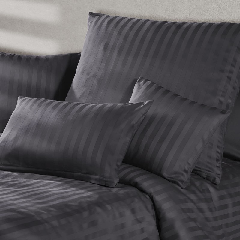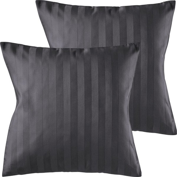 Pure Label Set of 2 Damask Mako Satin Pillowcases, Striped, Dark Grey, 40 x 40 cm, 100% Cotton, Incredibly Soft, Decorative, Matches Our Bed Linen Sets