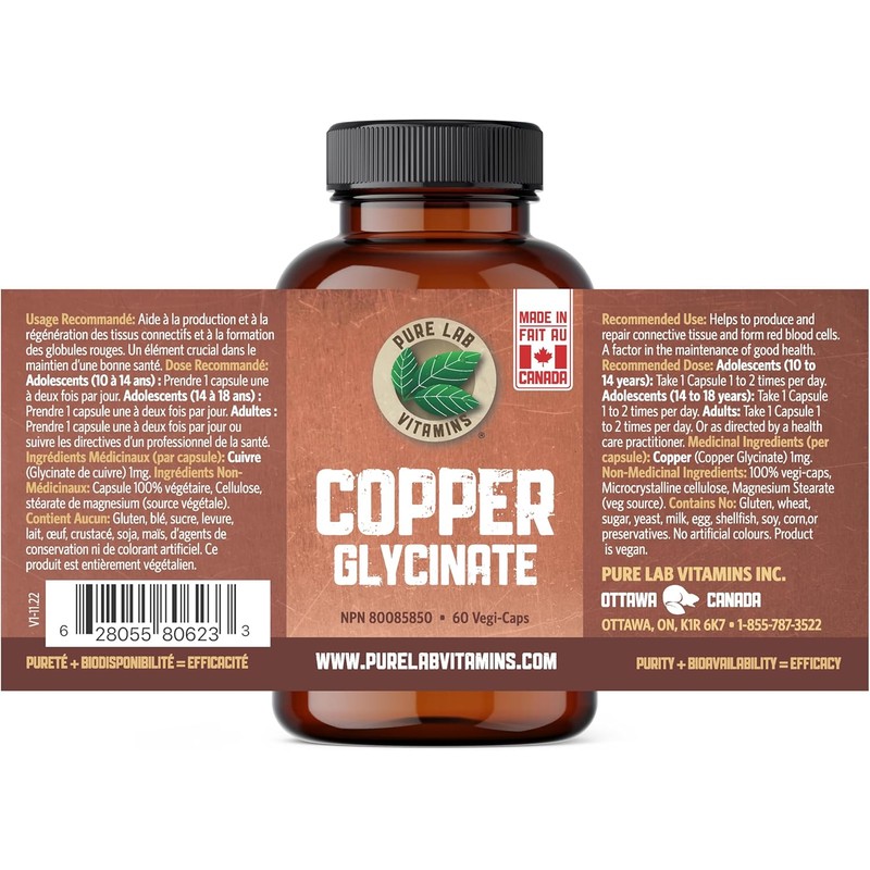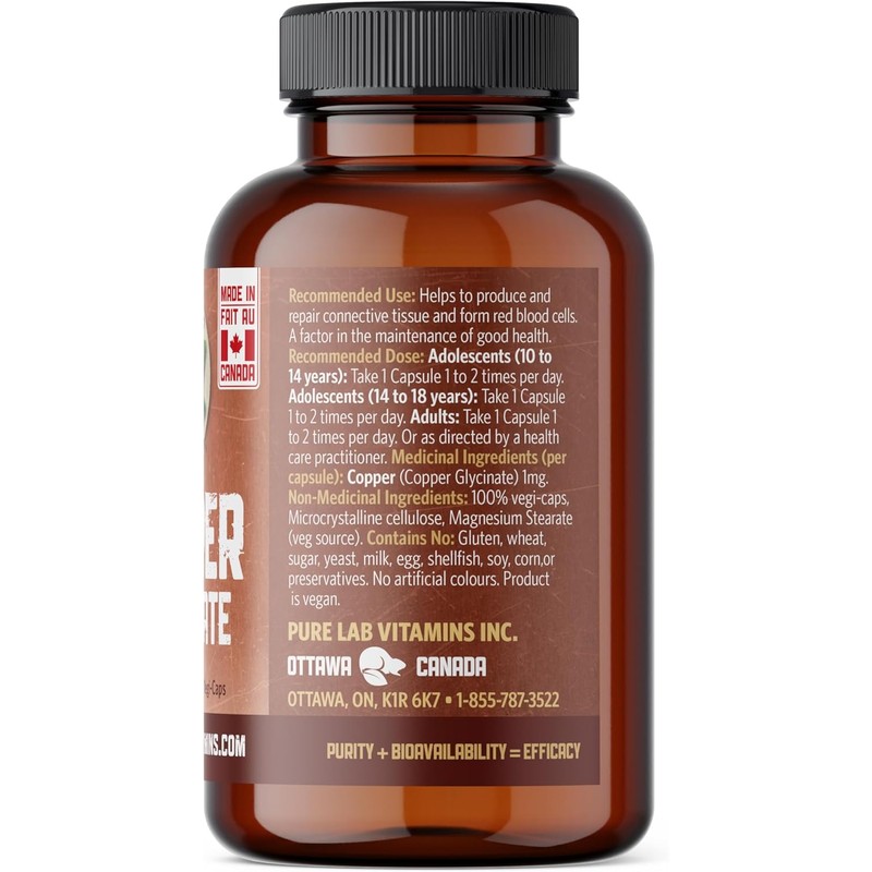 Pure Labs Copper Glycinate – Essential mineral support for collagen production, red blood cells, and immunity. High-quality, easy-to-swallow capsules for daily wellness.