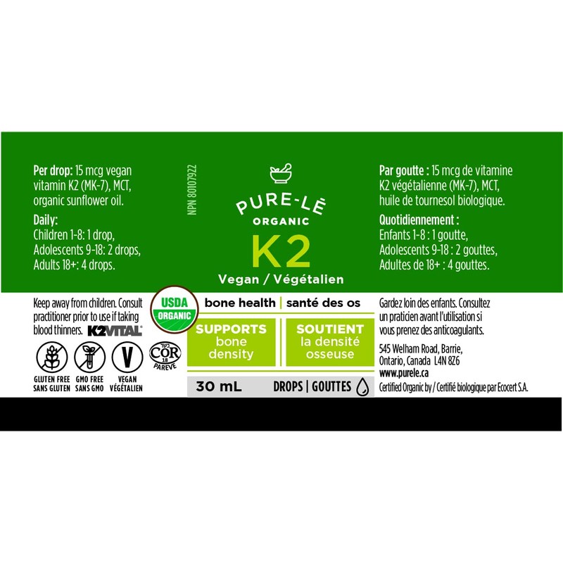 - Pure-lē Organic's Vegan Vitamin K2 harnesses the power of patented, soy-free K2Vital Menaquinone-7 (MK-7) vitamin K2, clinically shown to be highly bioavailable and stable