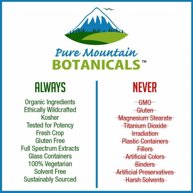 At Pure Mountain Botanicals, we believe there’s a better way to help you be your healthiest. A better way that works naturally with your body. Since the beginning, we have been committed to providing effective botanical supplements & essential oils from nature that are do not contain harsh solvents, fillers, and questionable preservatives. Our passion has always been about providing high-quality products that benefit your total health.