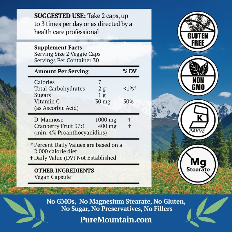 - - At Pure Mountain Botanicals we take your experience with our products to heart. If you are not happy with our cranberry and d mannose supplement , just let us know - we're here to help.