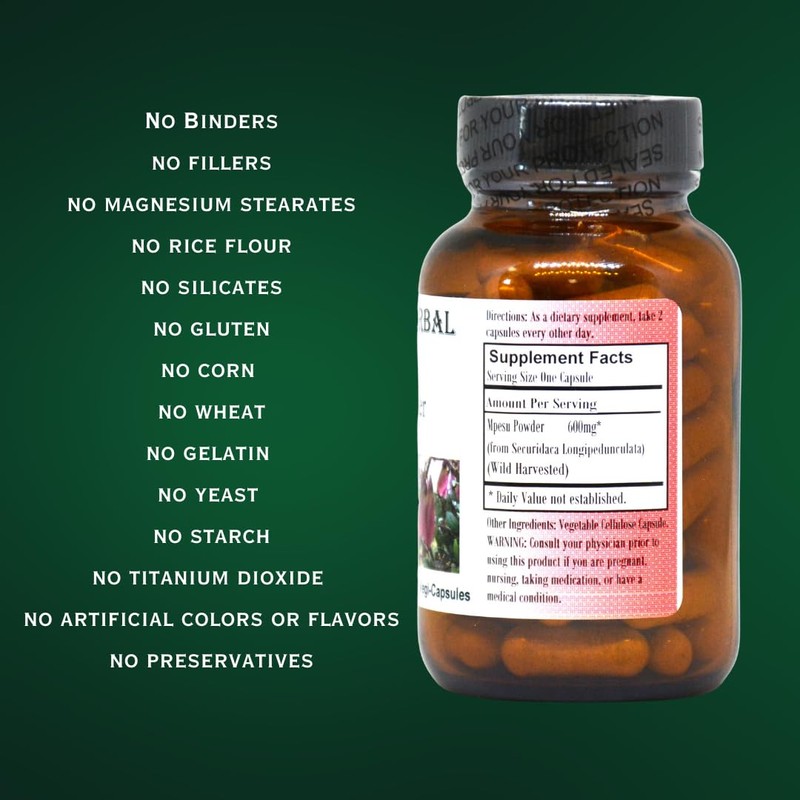 Pure Mpesu Root Powder Vegi-Caps (60-600mg) 100% Natural, No Additives, Stearate-Free, Traditional Herbal Supplement